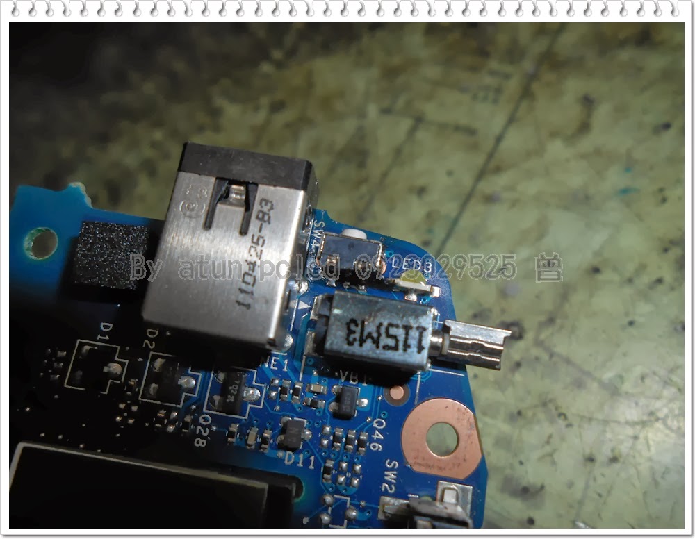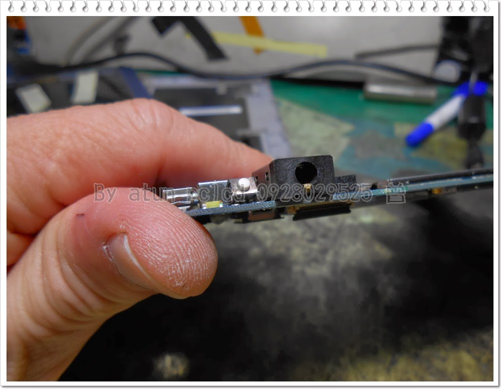 顯然~按鍵已經脫焊上翻,脫離了電路基板,沒了著力點,你當然不能碰觸到按鍵來啟動平板~