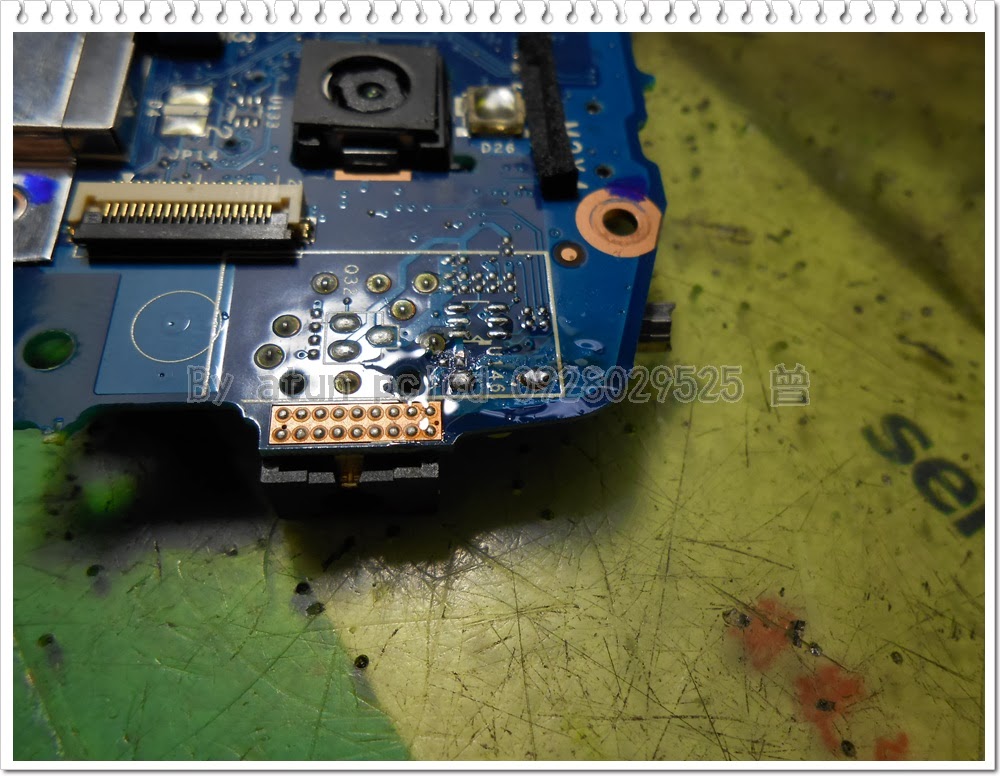 本來那一片金屬膠帶,是要用補強固定那個液晶屏線的,從這個圖照看來,它~真的是白貼了,根本沒有貼黏到液晶屏線嘛~