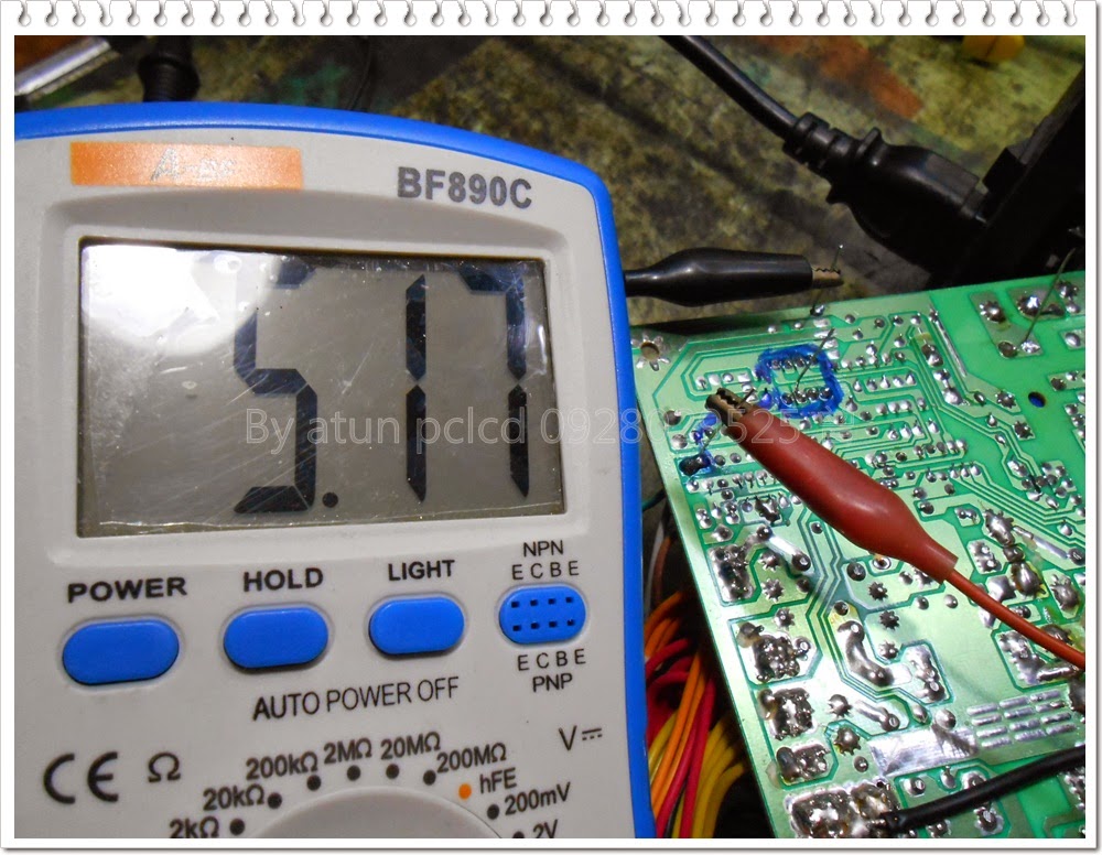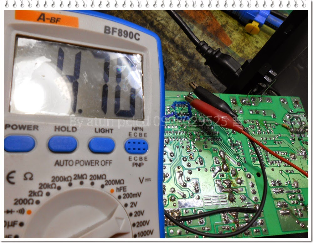 現在要測量的是這ㄎIC的工作電壓,顯然電壓並無到位,所以~沒有待機電壓輸出,這是必然的!