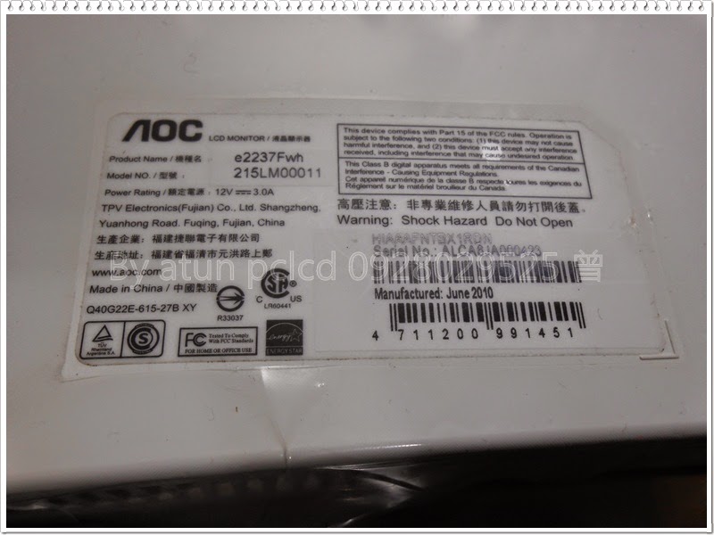 拆開紙箱~就是這一款:AOC(冠捷)型號:e2237Fwh