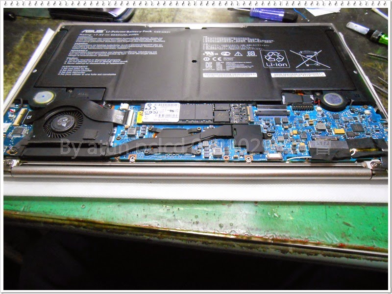 看來與前述的『UX32A』,使用的並不相同的面板,解下後~整個面板都散掉了~