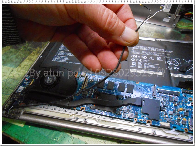 終於~完成無線網卡訊號線的架構~拆到毛毛的說…