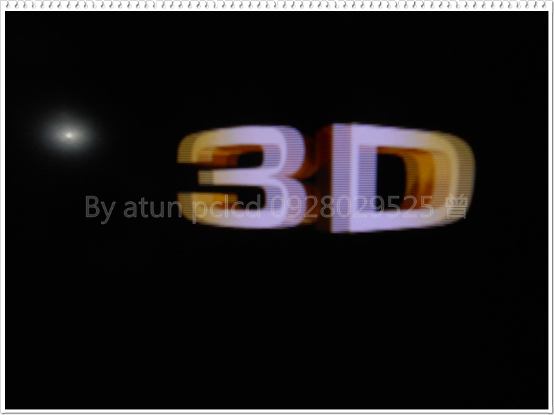 它已經正常顯示了這個LOGO —『3D』,這樣的顯示對嗎?有點類似殘影的故障型態說……