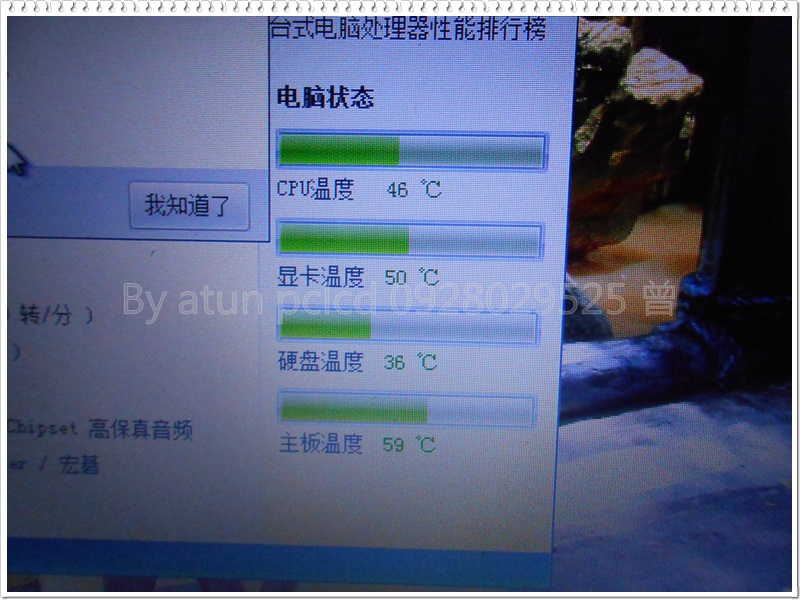 以下是安裝測試軟體後,所測量的結果~這才剛剛開機到桌面不到3分鐘~這些溫度也是還好~不過在燒機過程中,軟體設定的警示鈴聲大響,那是告訴你CPU的溫度已經飆破80℃大關~長期使用下,可想而知其後果為何?那才剛剛換了面板,這不是:『白費心力又破財嗎?』
