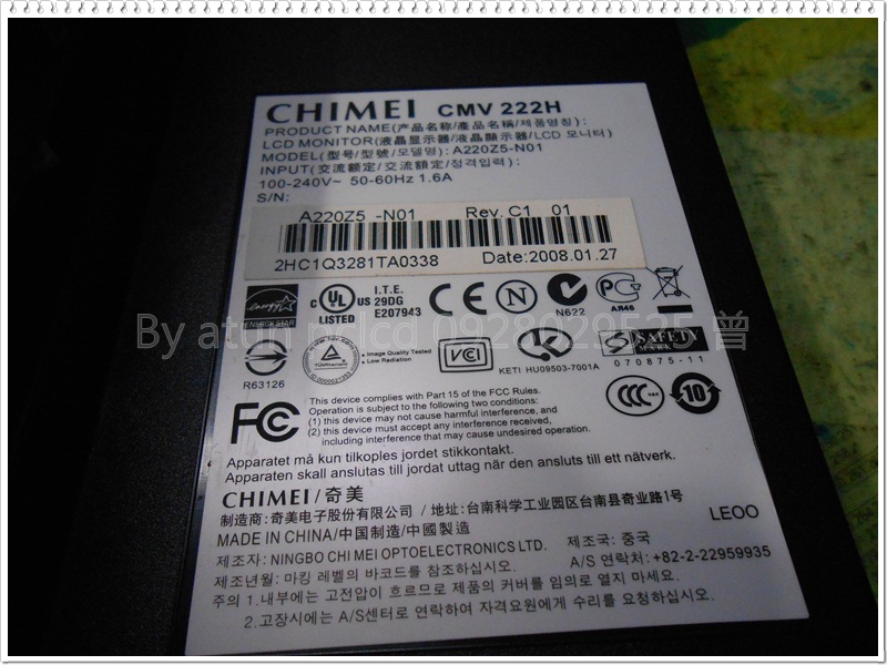 液晶螢幕維修~CHIMEI(奇美)型號:CMV 222H,送電無反應維修~