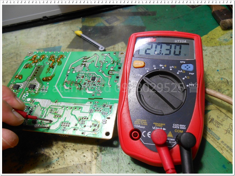 這回來給它單板測量,你可以看到兩個工作電壓,真的是有輸出的~