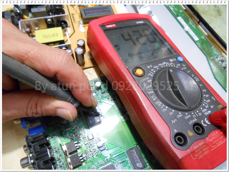 總之~在這一次主人DIY維修中,PI板的部位還不能確定損傷如何?而較為顯見的是,主機板已經出現很大的問題,最後在下也無法修復,因為我查量了主晶片附近的貼片有些阻值是很低~?