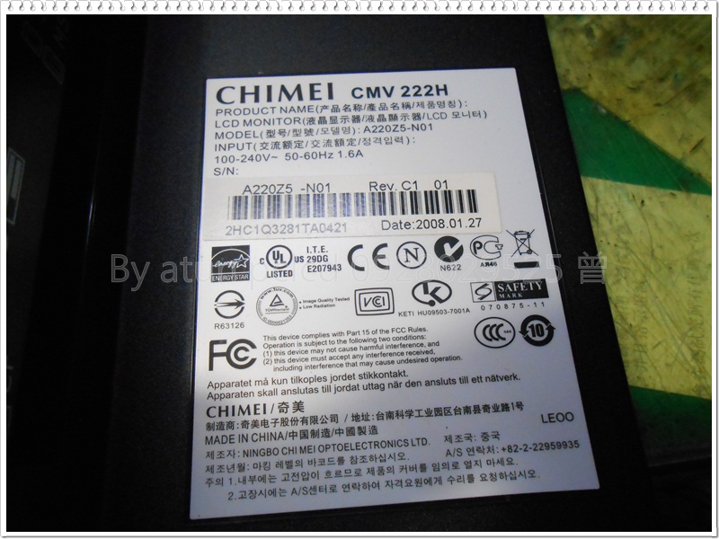 今天就從這一台螢幕開始吧~型號是:CHIMEI(奇美)CMV222H