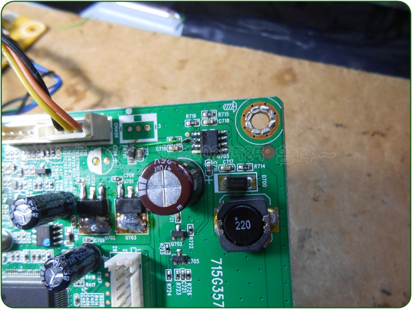 這樣在關機下(只要有送入市電)是有電進入面板的,那麼~那ㄎ降壓IC也還是持續自舉輸出DC12V中,所以面板持續又12V進入,原主板的IC我是不擔心啦,我憂慮的是Tcon板上那ㄎ剛剛加裝銅片的降壓IC,他不就永遠在作工中,永遠在發燙中……