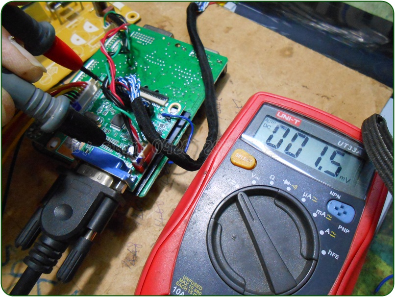 重新換上新的DC TO DC電源管理IC後,現在已經可量得Tcon板上的高、低電位了…