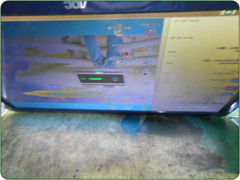 面板上的灰塵,並非是在我工作室存放時所製造出來的,聽主人說:它已經故障很久了,主人好久前有送修過螢幕,這回主人抱著無法修復的心態,試著送修看看囉……