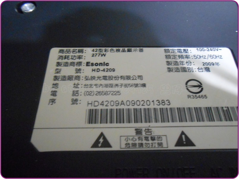 今天繼續來看一台液晶電視的維修,是底下這一個廠牌、型號: ESonic(億碩、虹映光電)型號:HD-4209~
