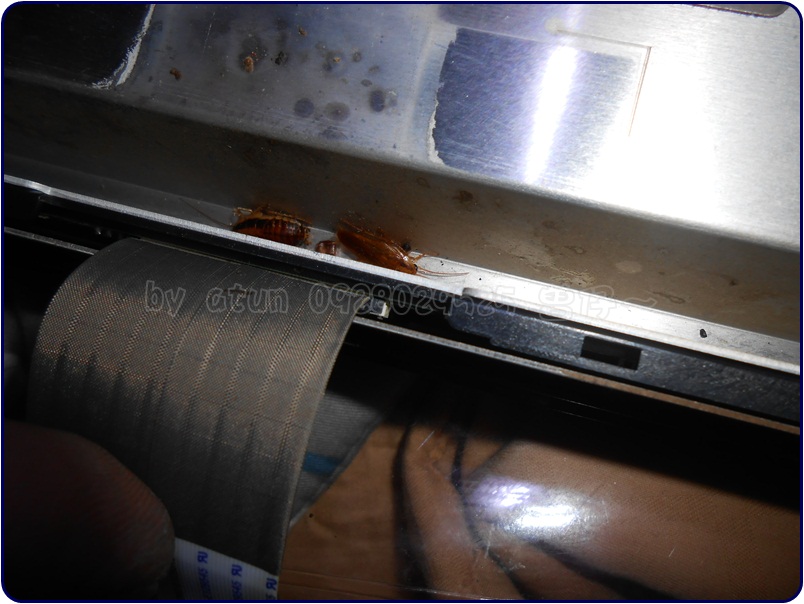 最後~就要來解下TCON部位的鐵殼蓋~也還都是野生的小強四處在爬動…