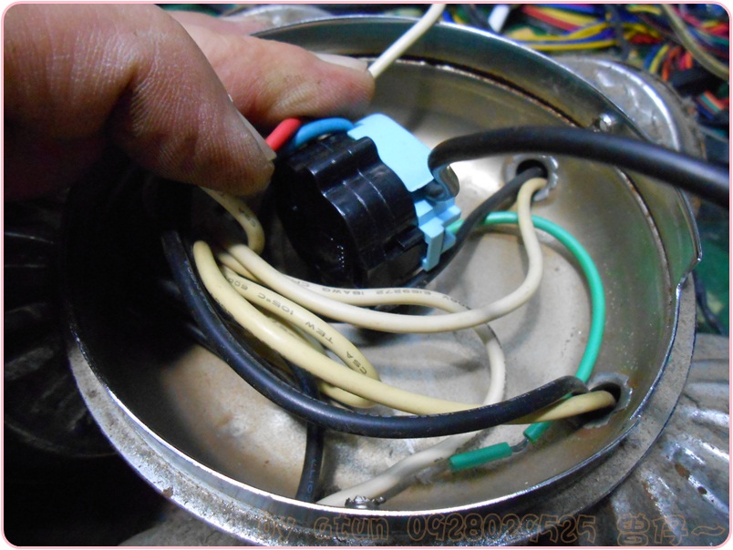OK了~最後將手中這兩條導線,接回原來的PIN座內(這邊是市電AC110V),記得要關電源(其實一開始解下這兩條導線時,你就該關電源的),以免觸電,或是不小心讓家中市電短路喔……