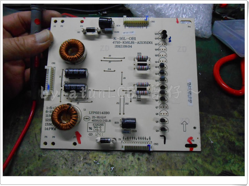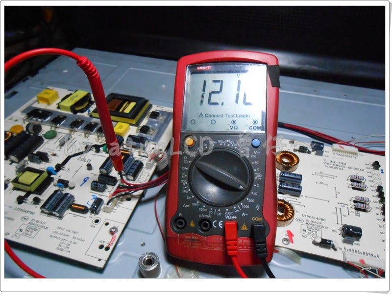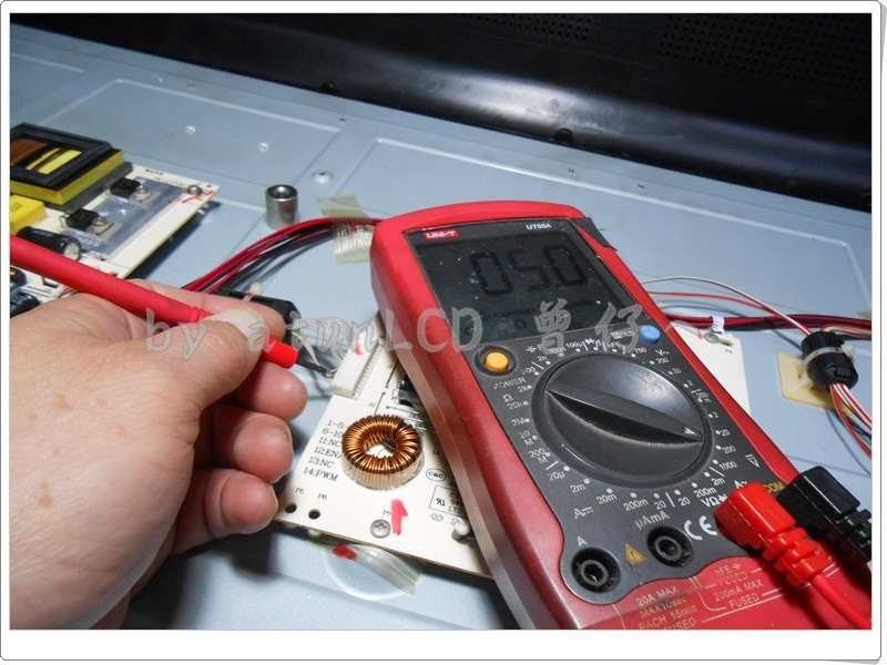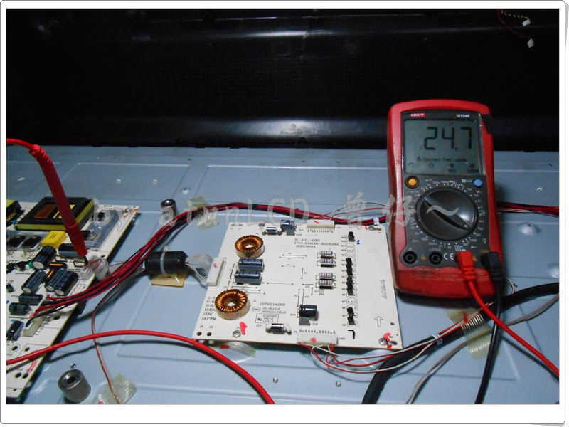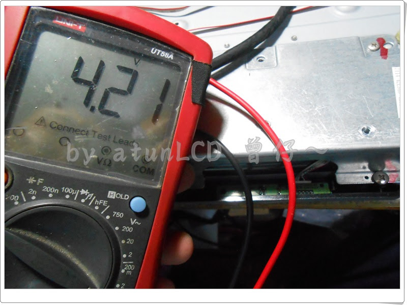 再一次送電查量電力輸出,並且也查檢背光驅動的工作條件…