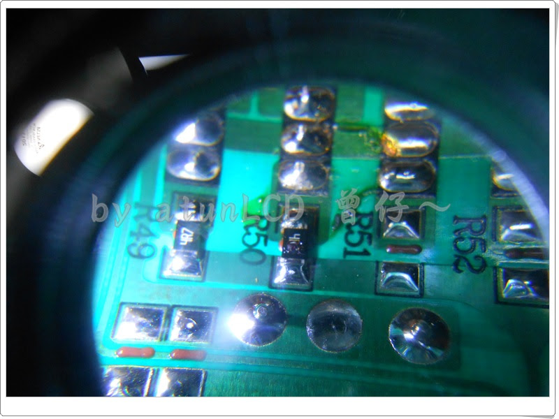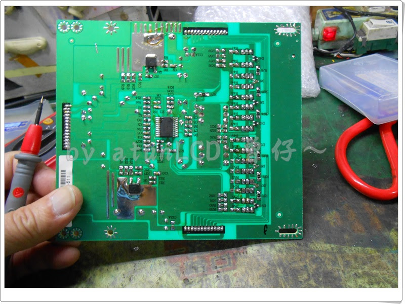 很明顯~工作條件都是存在的,那麼…從底下這一個電路啟的後端電路,應當都是可能出問題的『鹹魚飯』,解下它…開始來檢測……