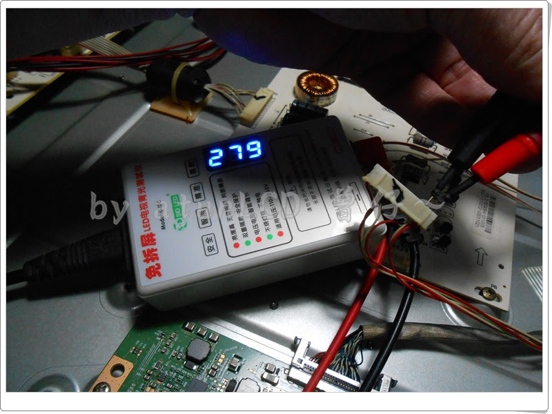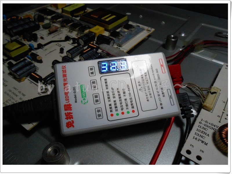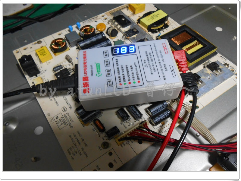 其他通通不用測量,取來LED背光測試儀,來試測每一迴路,老實說這只是參考值,並費絕對喔…,底下測試……