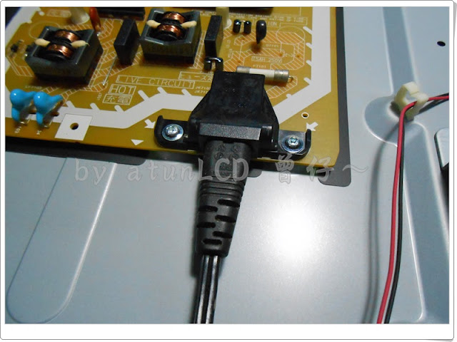 插頭已經插入電源板,很可惜待機紅燈號並沒有亮起…,這就是本機要排除的故障點,因為沒有待機,所以就別想要能啟動機器收看節目…