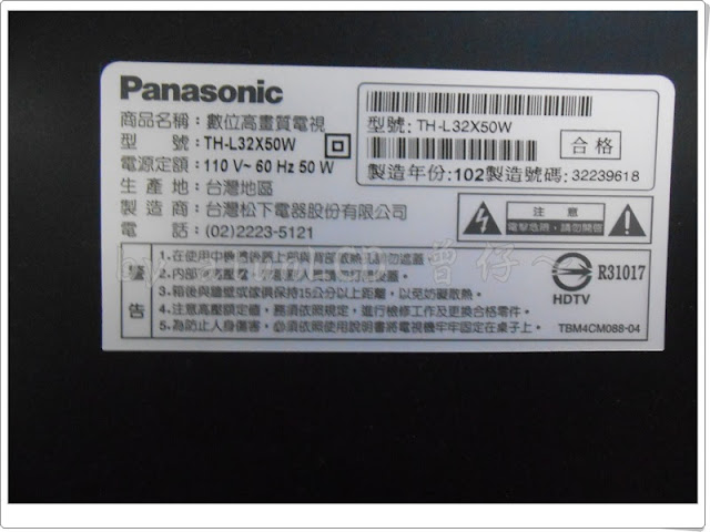 今天來看這台液晶電視的維修,主角是:Panasonic(國際)型號:TH-L32X50W