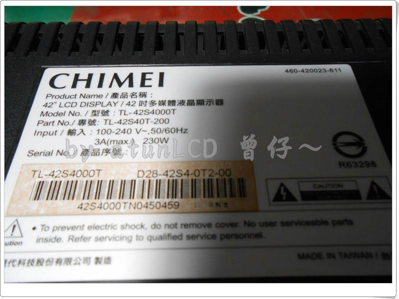 眾大大安安…,又來到PO寫網誌時段,今天來看這一台液晶電視的維修,是底下這一個廠牌、型號:CHIMEI(奇美)型號:TL-42S4000T