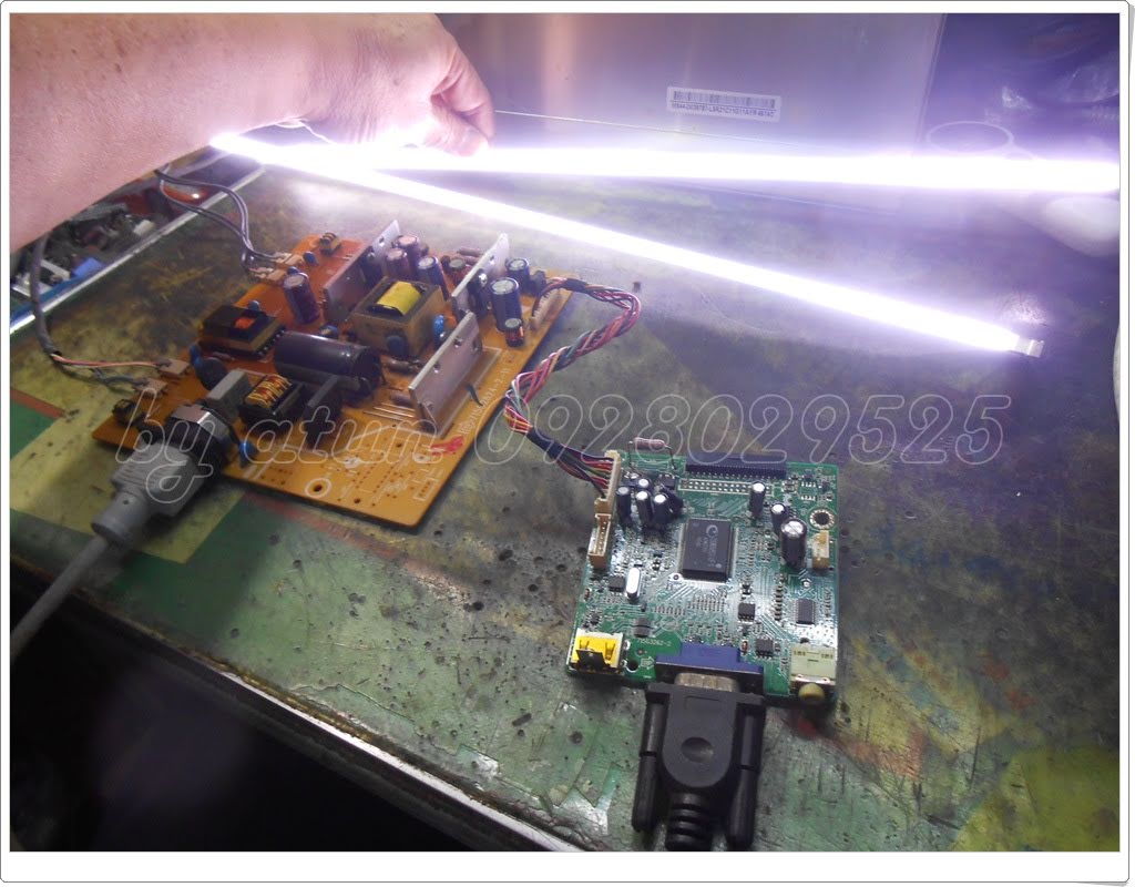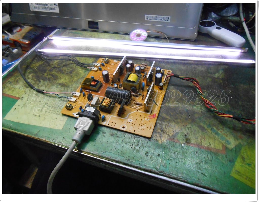 我們直接來到了這邊,燈條測試狀況,也是它的故障現象:送電啟動了,背光沒有亮起…